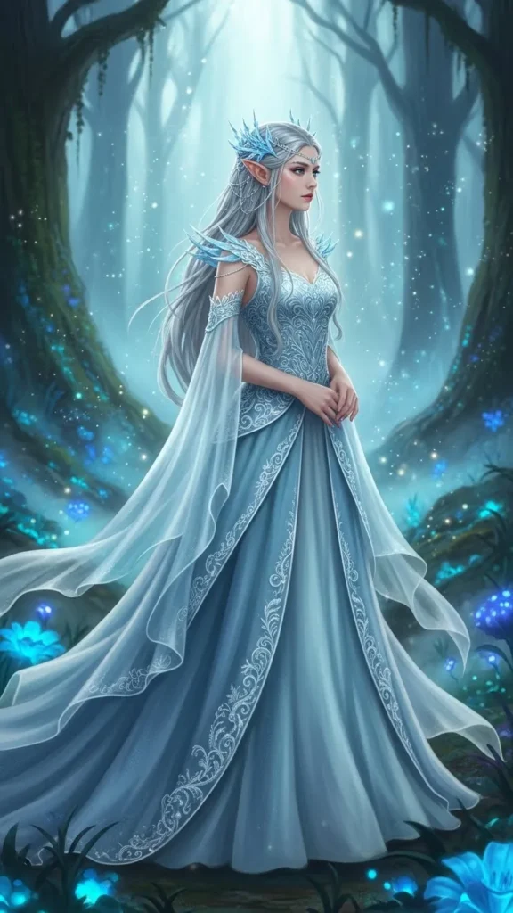 The combination of blue and silver feels celestial and regal, making it a favorite for high-end cosplay and editorial-style shoots.