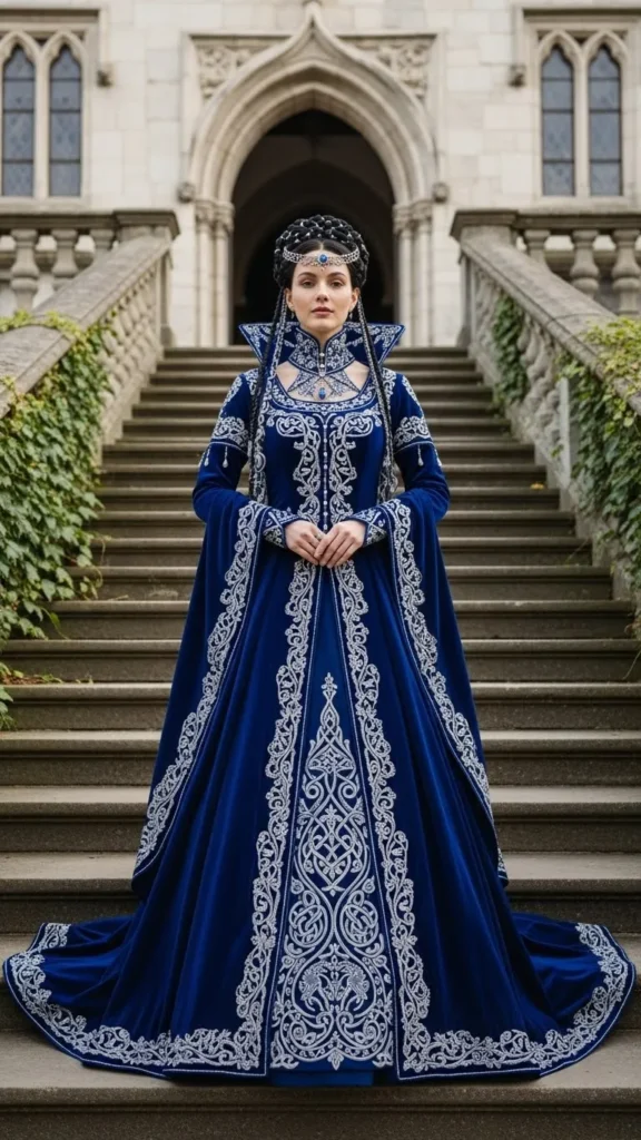 Blue has always symbolized royalty, mystery, and enchantment—making it one of the most beloved colors in medieval and fantasy fashion.