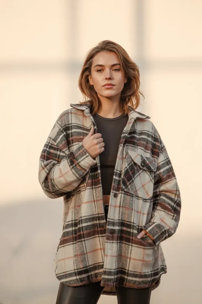 Style tip: Plaid or neutral shackets work best for fall.