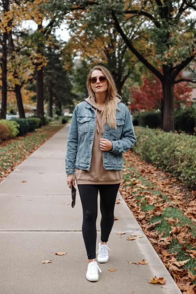 3. Denim Jacket + Hoodie + Leggings