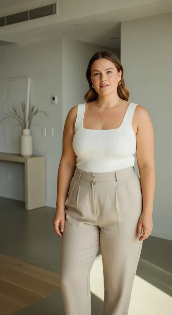 9. Wide Strap Tank with Linen Trousers Minimal Chic