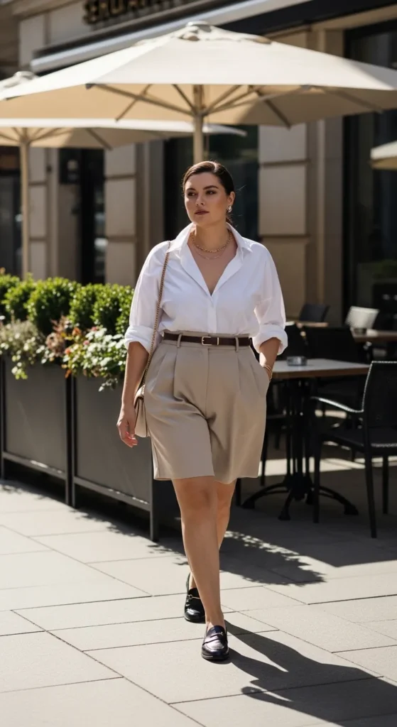 3. Structured White Shirt with Tailored Shorts
