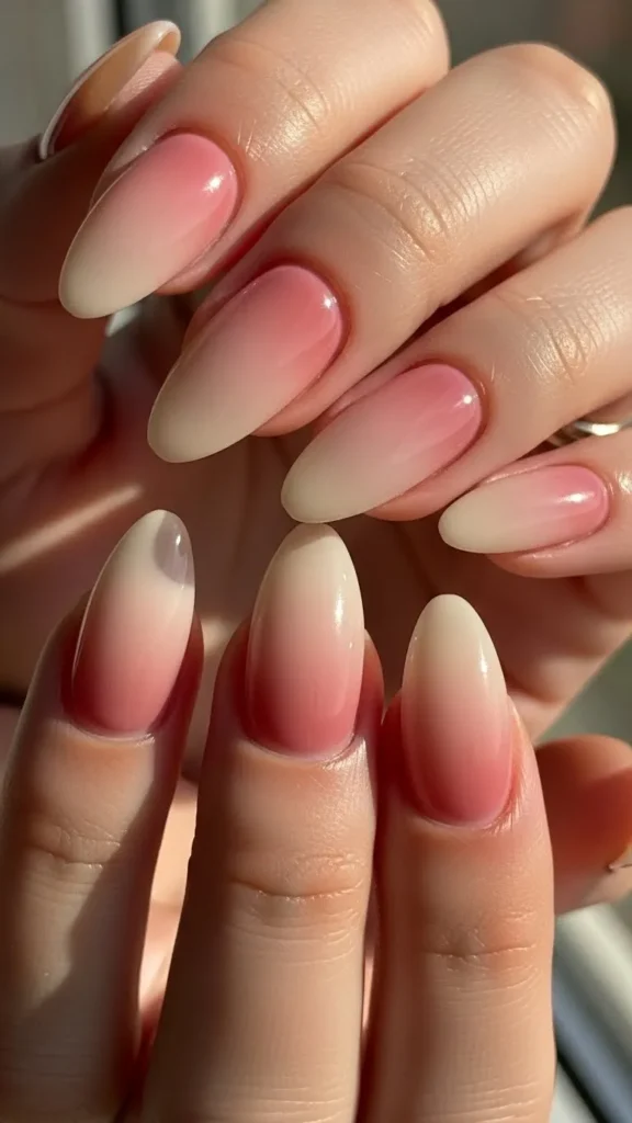 Neutral ombre nails blend soft shades like beige, blush, and cream seamlessly.