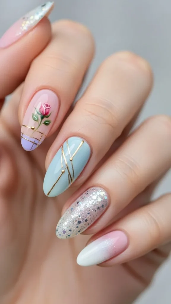 Pair glitter with neutral or milky bases.