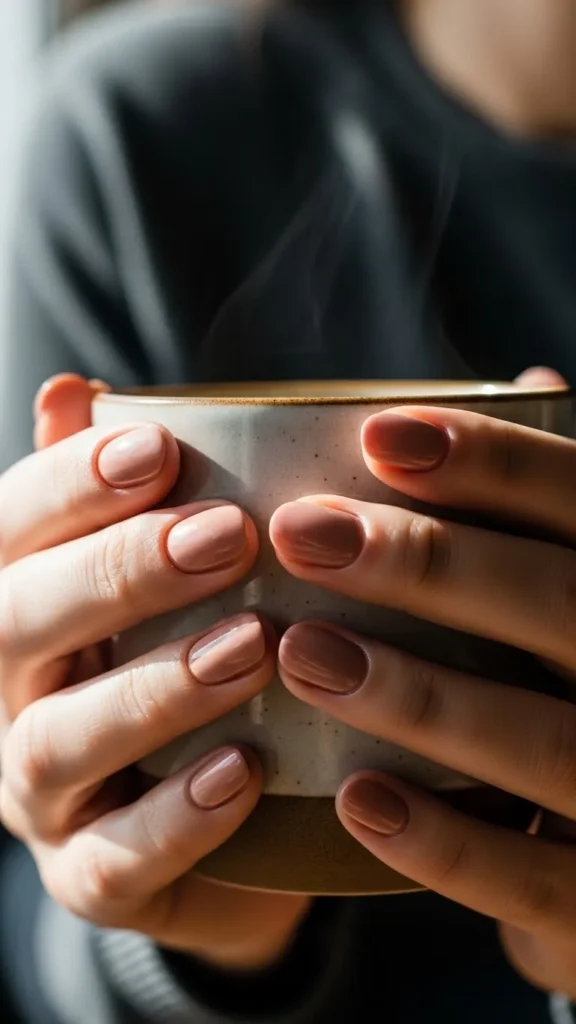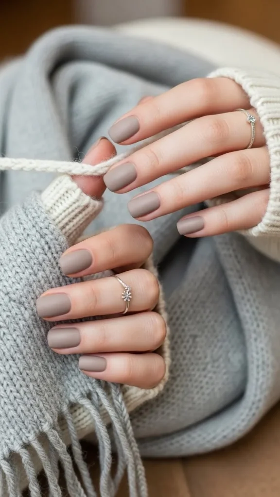 This shade works beautifully on short or long nails and pairs well with cozy sweaters, office outfits, and winter neutrals.