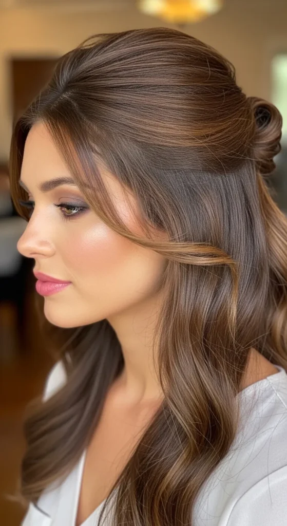 A low bun with texture feels elegant yet modern. It’s a great option when you want something polished without looking overly styled. Brunette hair really shines here because texture enhances depth.