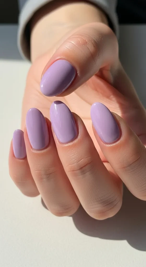 A classic glossy lavender manicure is effortlessly chic and timeless. This look works beautifully on short or medium nails and feels polished without needing any design.