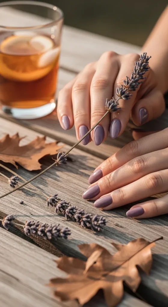 Muted lavender shades work beautifully as summer fades into fall. Pair with short nails or matte finishes for a transitional look that feels seasonal and stylish.