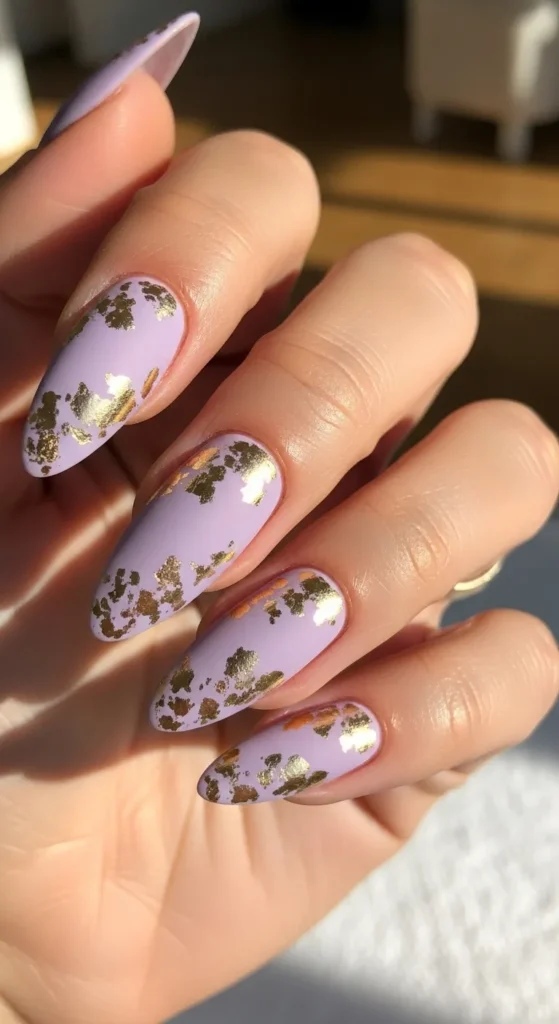 7. Lavender Nails with Gold Foil