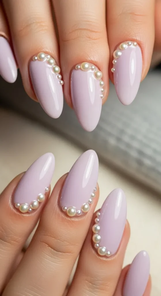 12. Lavender Nails with Pearl Accents