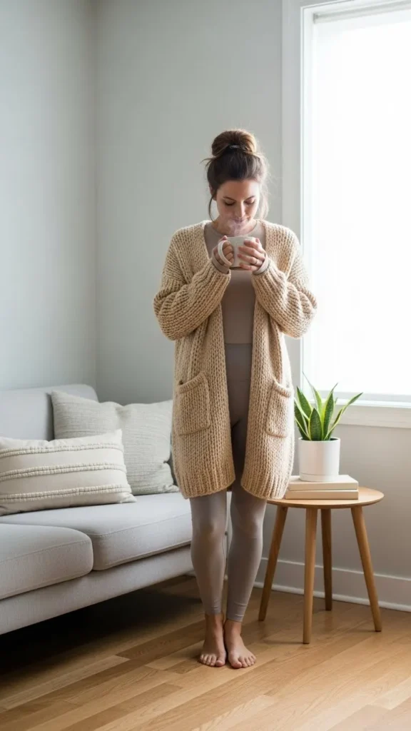 The fitted base keeps things flattering, while the long cardigan adds movement and softness.