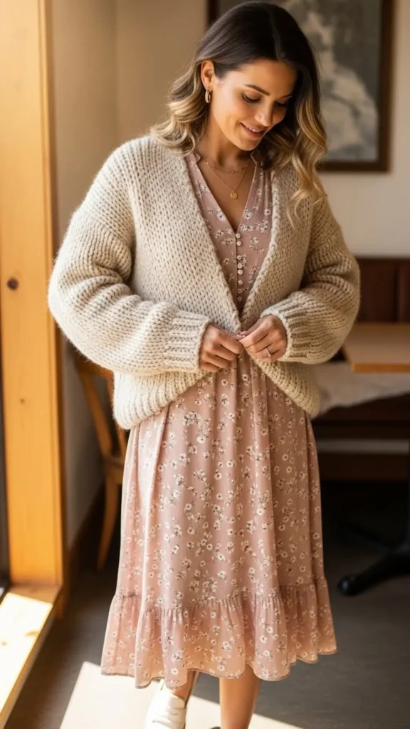 3. Lightweight Sweater Over a Midi Dress