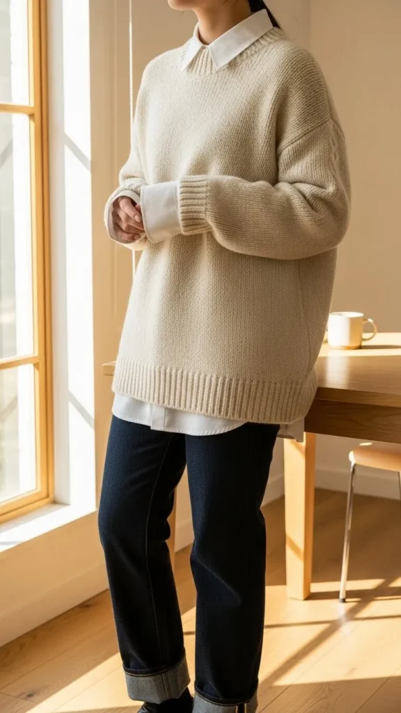 7. Oversized Knit + Collared Shirt