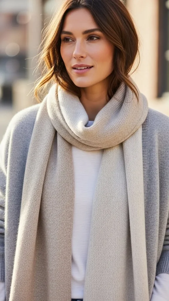Accessories count as layers too. A scarf adds texture, warmth, and visual interest to even the simplest outfit.