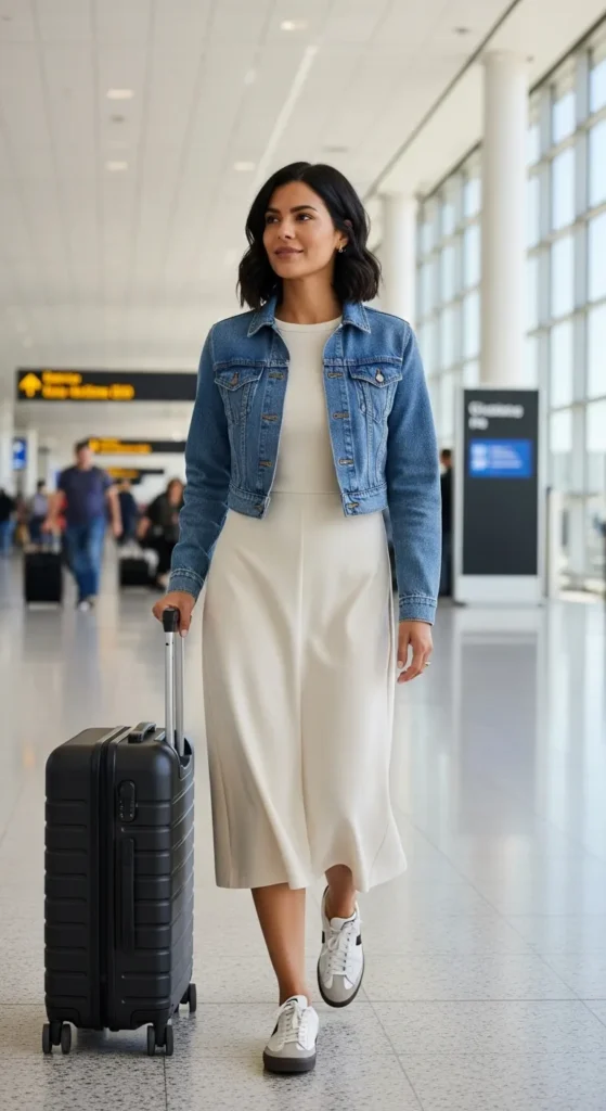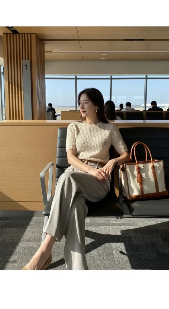 This look feels effortless and works well for short flights or same-day plans.