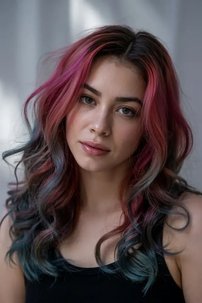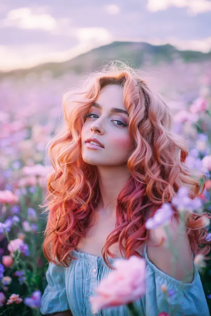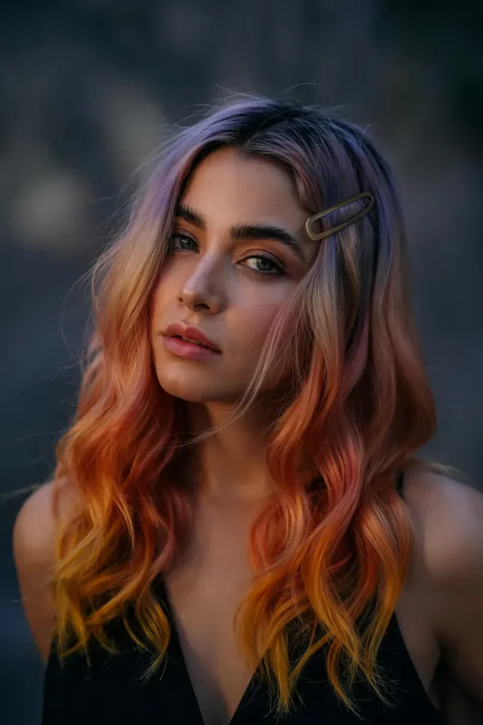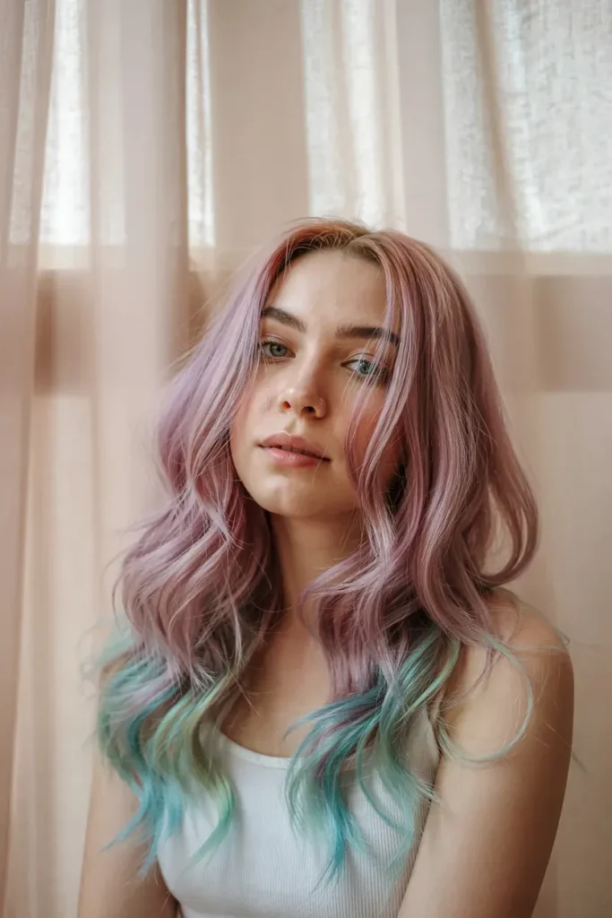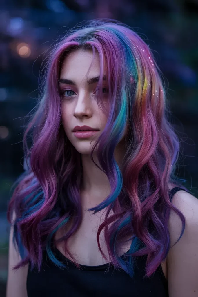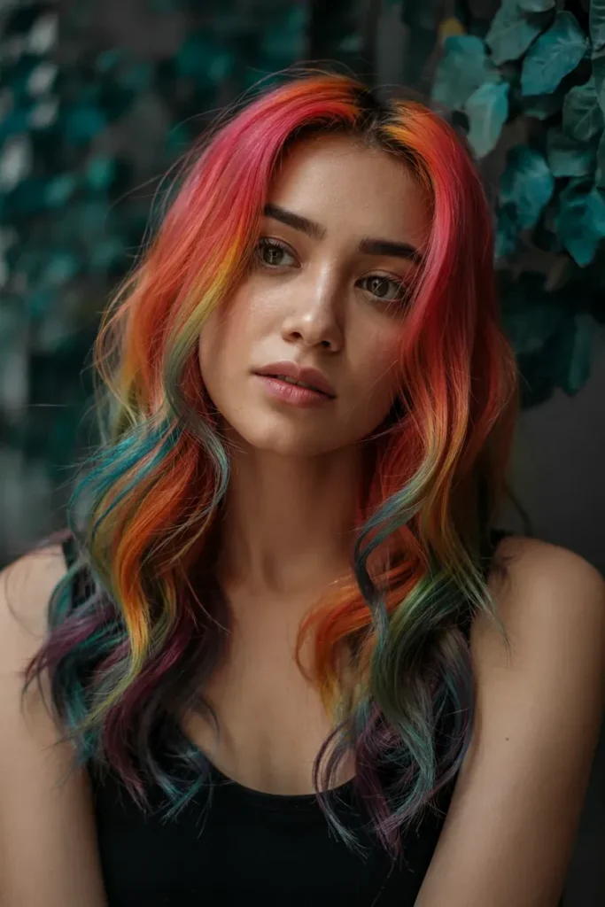 This version of Rainbow Hairstyles feels dreamy and feminine, especially when styled in loose waves.