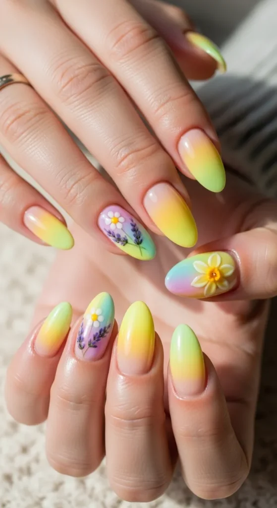 15. Ombre Yellow Nails with Floral Fade
