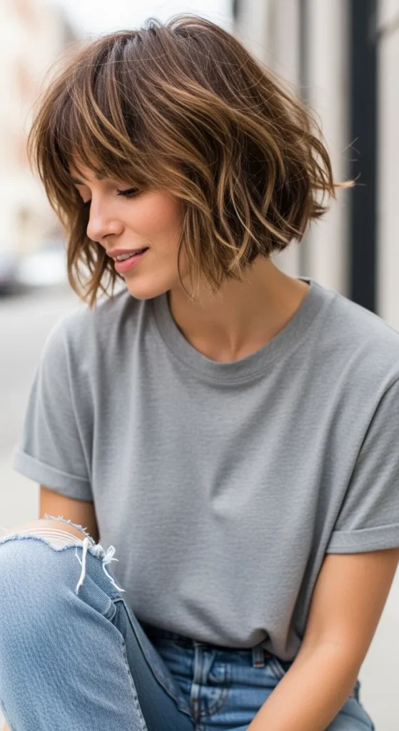 This relaxed bob features soft texture and parted bangs that open up the face. Pinterest users love this style because it feels effortless yet stylish—perfect for everyday wear without constant upkeep.