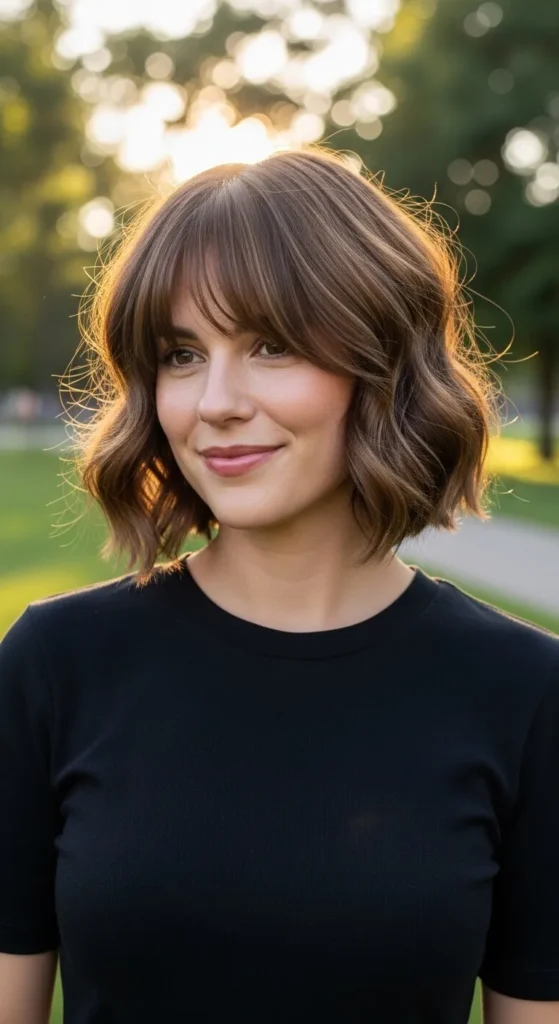Choppy bangs add edge and texture to a classic bob. Pinterest users love how playful and modern this look feels.