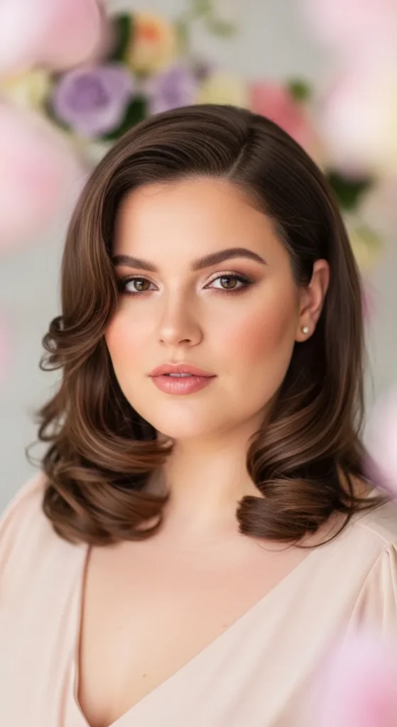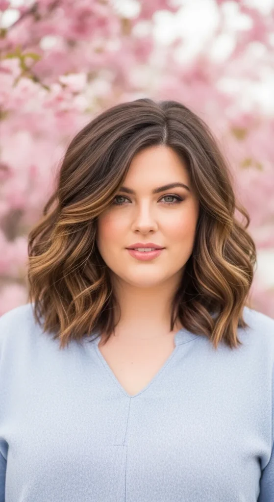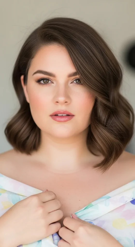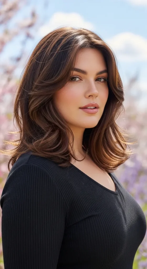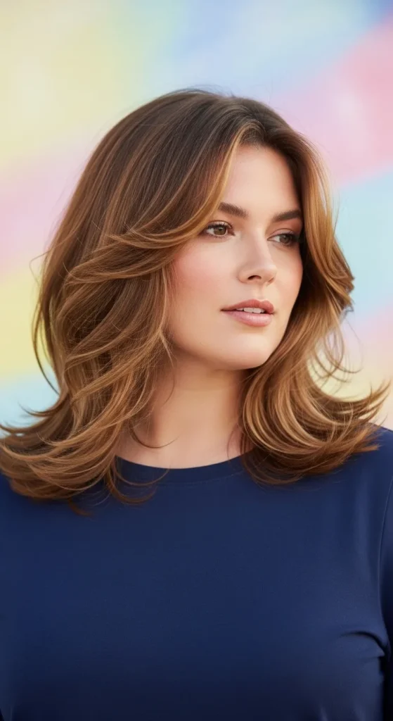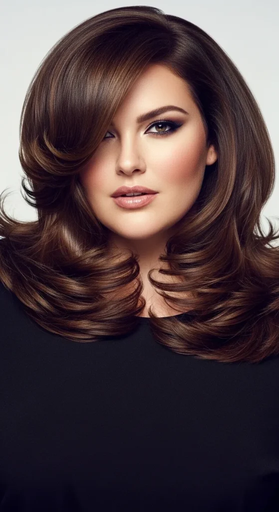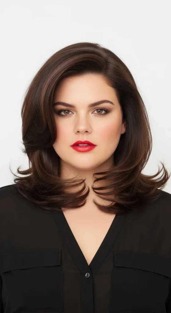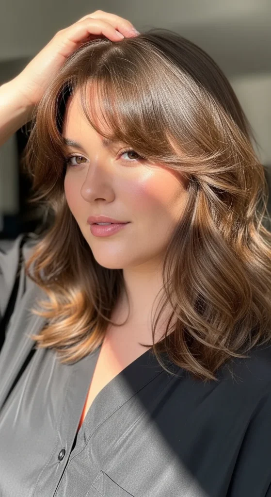 Face-framing layers are one of the most flattering details for fuller faces. These layers start near the cheekbones and blend into soft waves. The result is a balanced haircut that highlights facial features while adding movement.