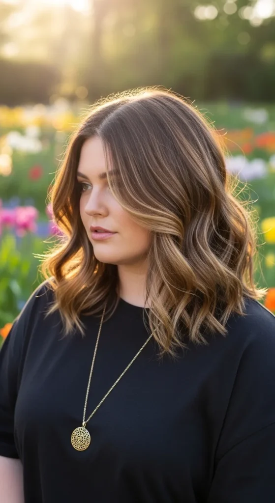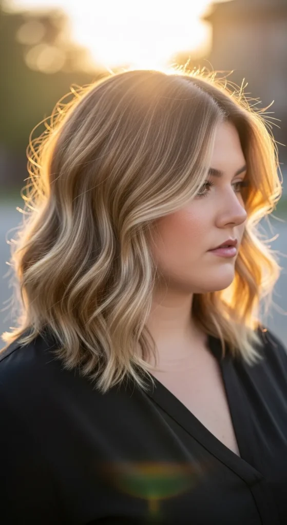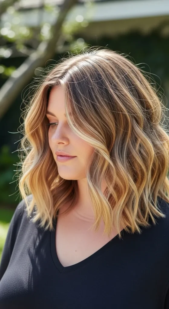Subtle highlights enhance the texture of wavy hair by creating dimension and depth. When paired with layered medium-length hair, the highlights make the waves stand out beautifully while keeping the look natural.