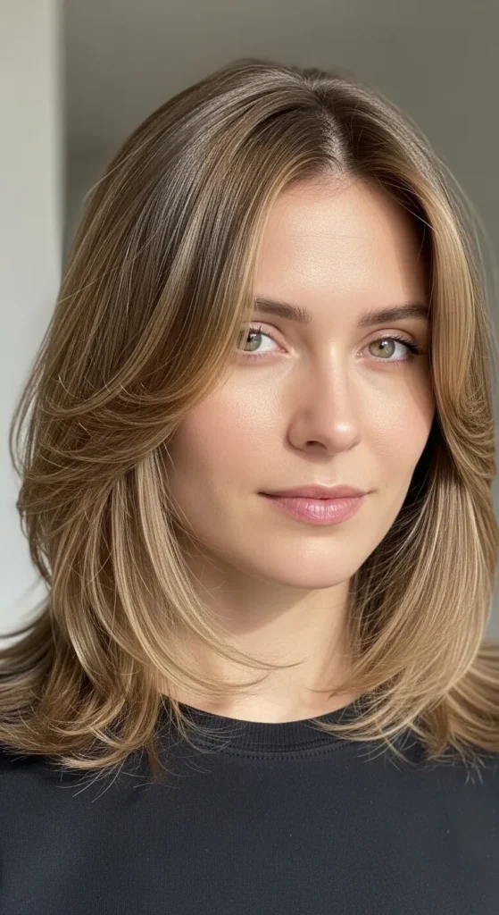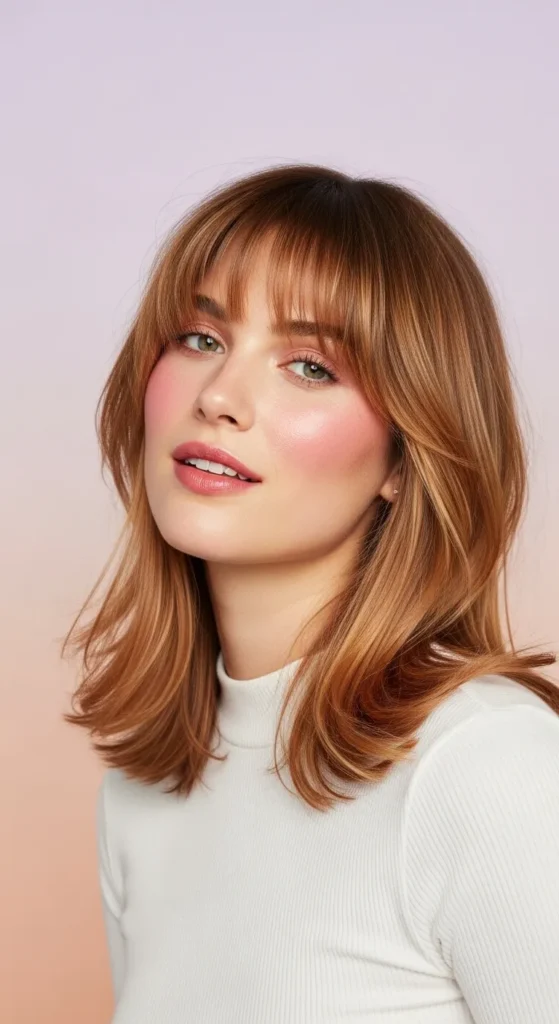 Curtain bangs are perfect for oval faces because they frame without overpowering. Paired with a medium cut, they add softness and a subtle retro vibe that’s trending again.