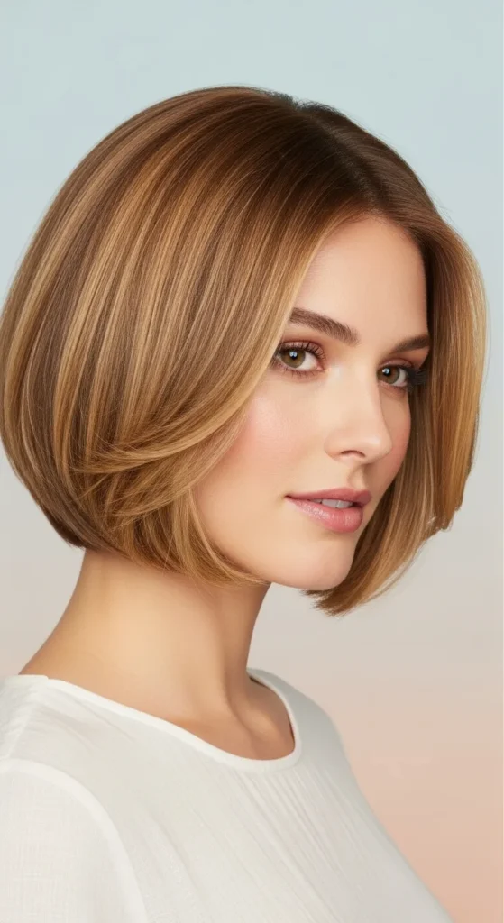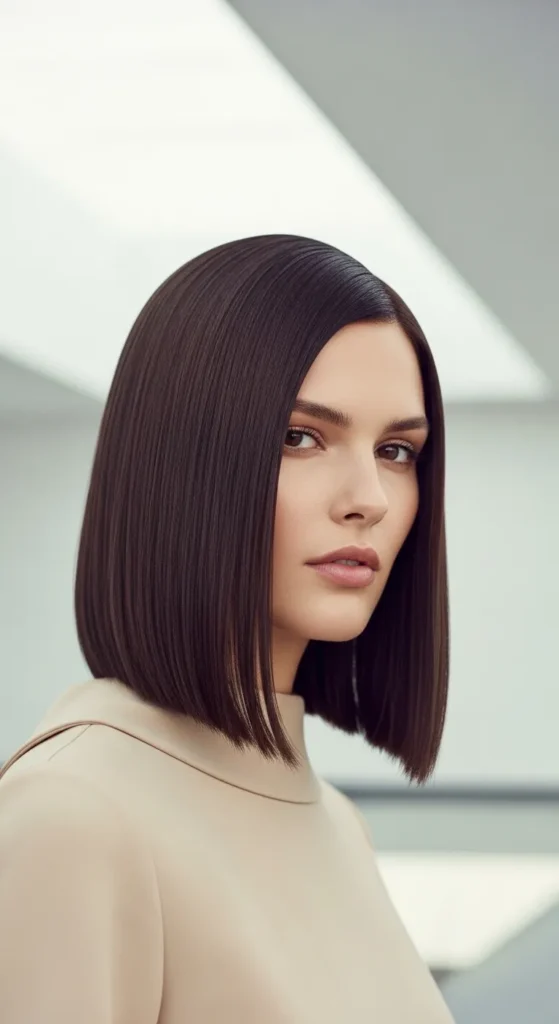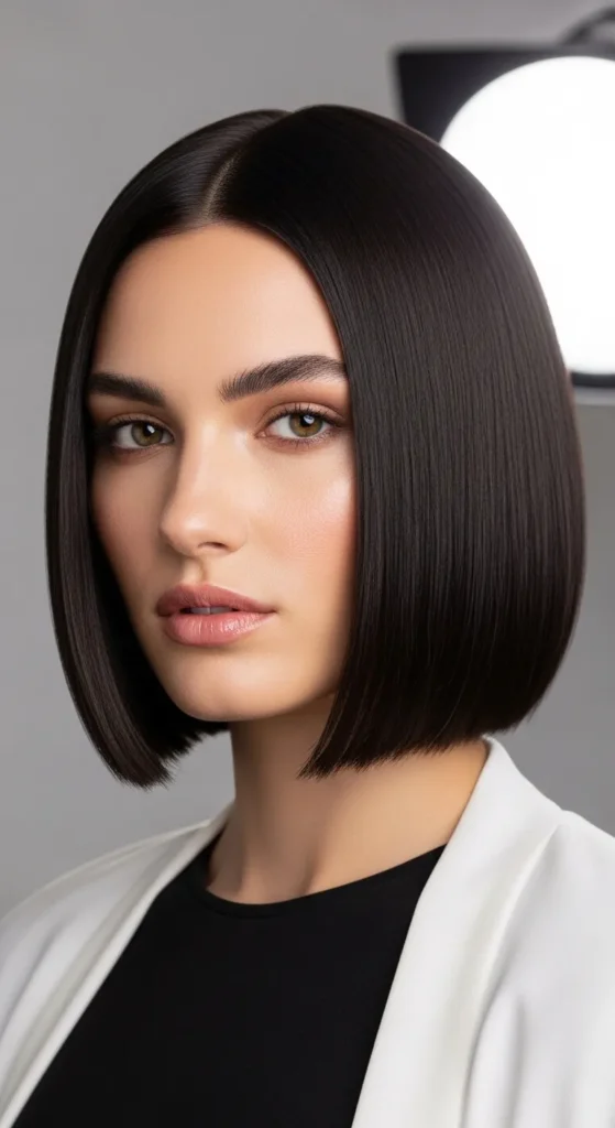 A chin-length bob highlights cheekbones and feels bold yet refined. Oval faces pull this off beautifully without looking harsh.