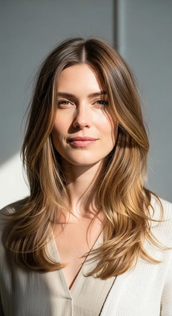 A center part paired with long layers feels balanced and modern. It’s one of the most searched spring haircuts for women.