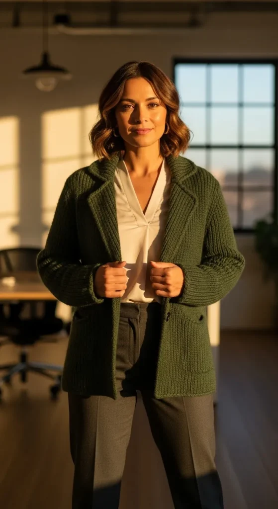 Knit blazers offer structure without stiffness. Layer one over a lightweight blouse for a comfortable outfit that still feels work-appropriate.