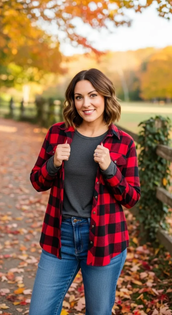 A structured blazer layered over a soft knit sweater instantly elevates denim. Choose earthy shades like taupe or chocolate for a classy yet approachable fall look.