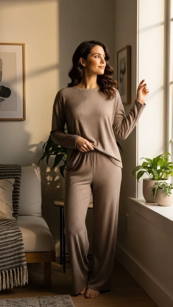 A ribbed lounge set instantly looks polished while staying incredibly comfortable.