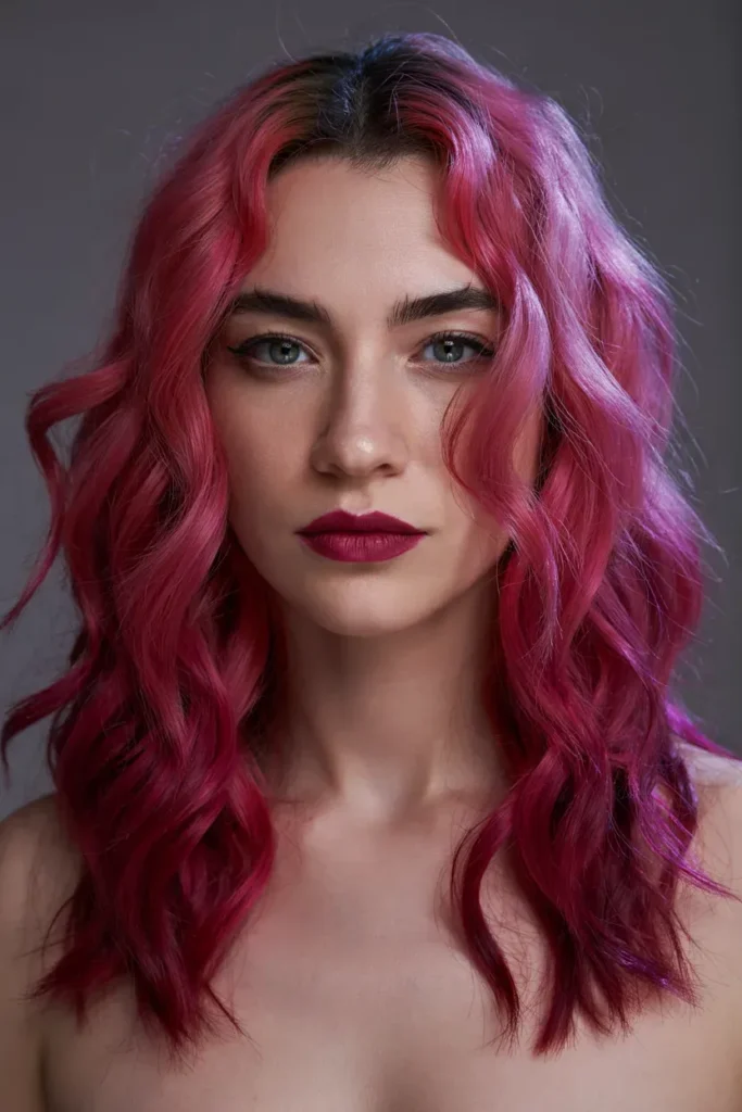 Fuchsia balances pink and purple tones for a dramatic but wearable look. It pairs beautifully with darker roots for contrast.