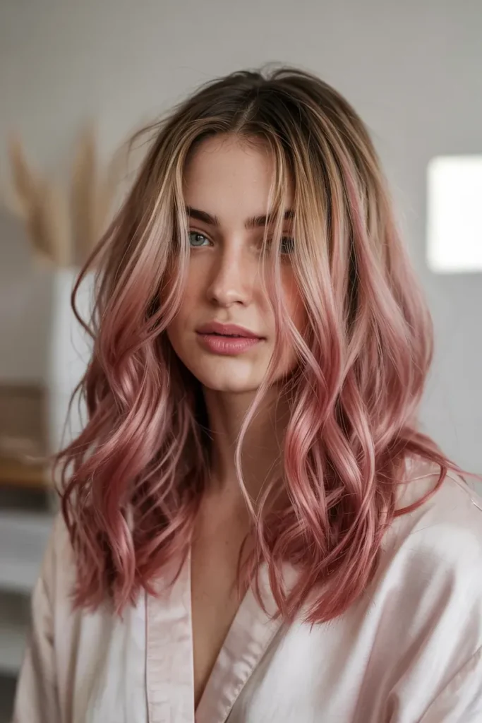 Pink balayage blends color softly into natural hair, offering low maintenance and effortless grow-out.