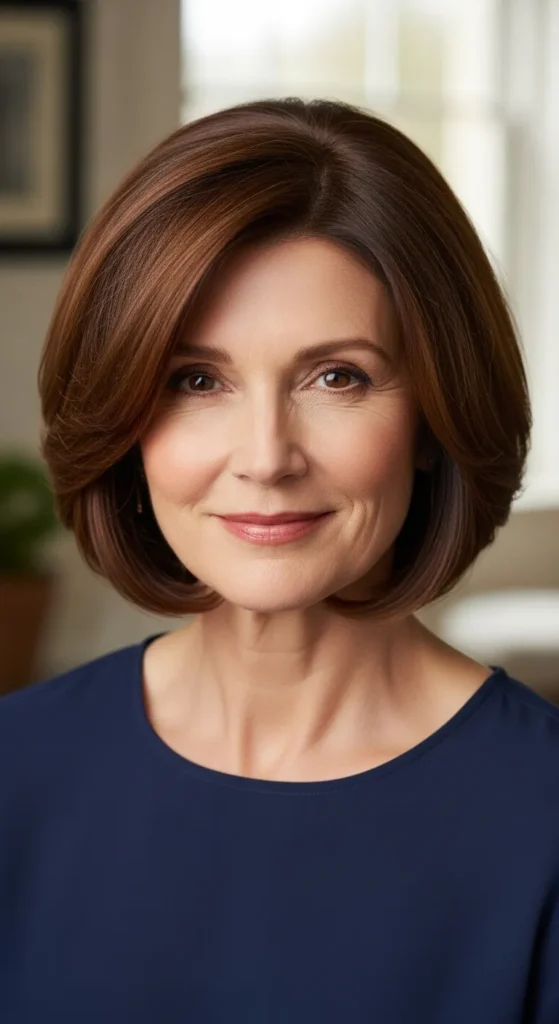 Slightly tucked-under ends create a polished, classic look. This version feels elegant and timeless, making it perfect for professional settings.