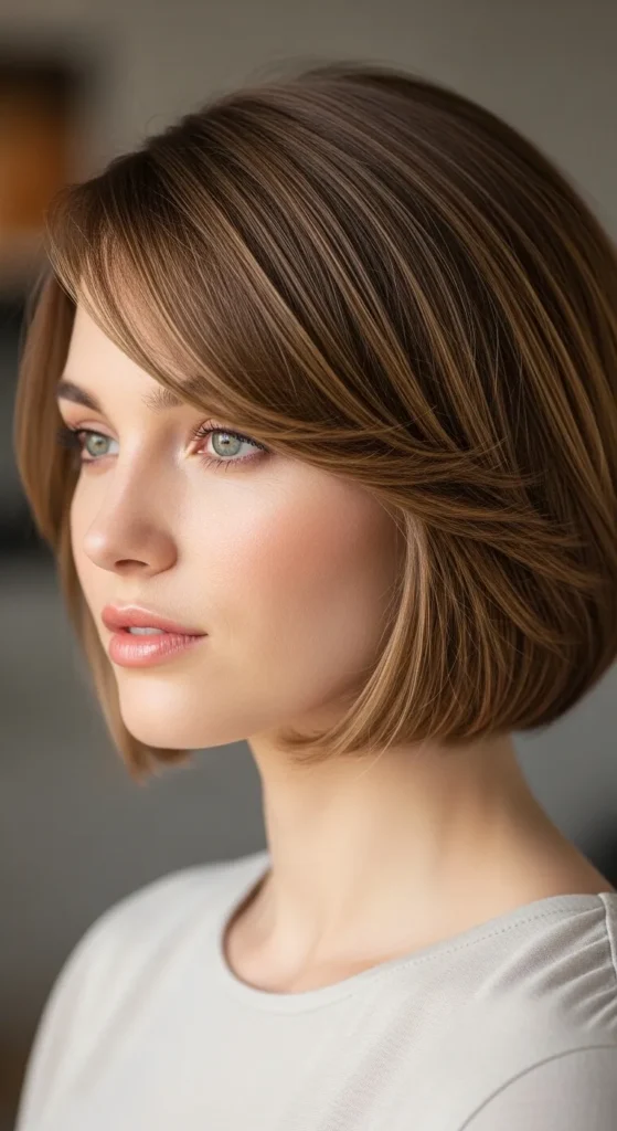 A deep side part adds instant volume and sophistication. It’s a simple styling change that makes a short bob feel brand new and flattering for fine hair.