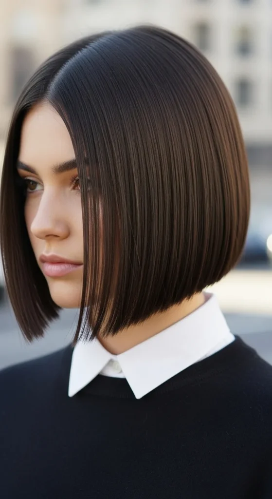 Clean, sharp ends give this style a modern edge. It’s sleek, bold, and perfect for women who love structure in their short hairstyles.