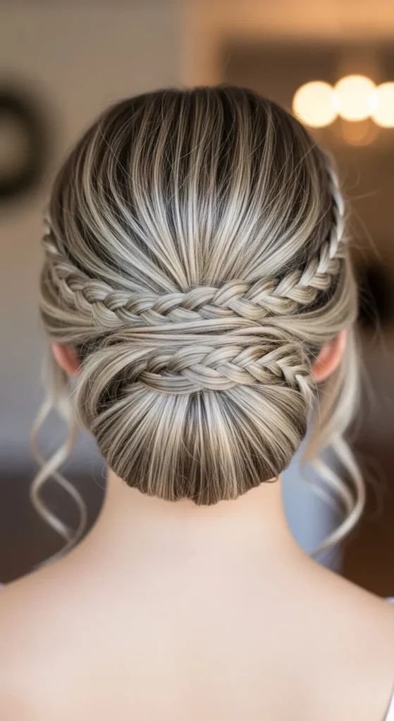 A braided low bun feels elegant and timeless. It’s perfect if you want a hairstyle that stays put all day.