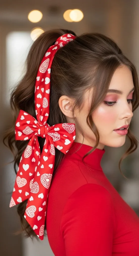 Tie a scarf or ribbon around a ponytail for instant Valentine flair.