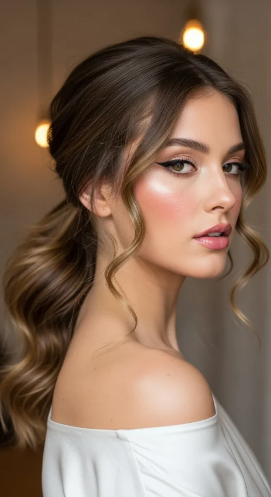 This hairstyle blends structure and softness. The braid adds interest, while loose waves keep it romantic.