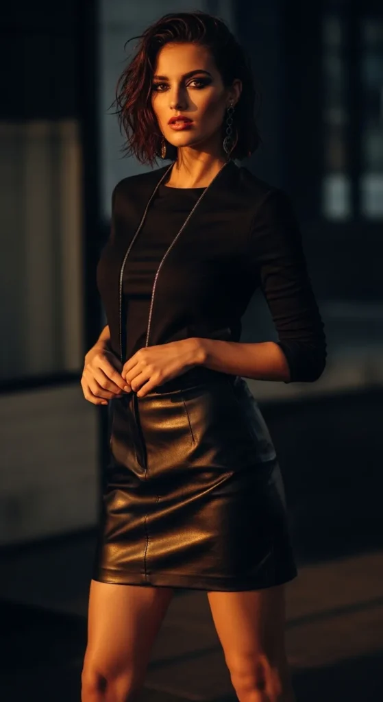 Leather skirts add texture while loafers keep the look wearable. Stick to classic black or brown for longevity.