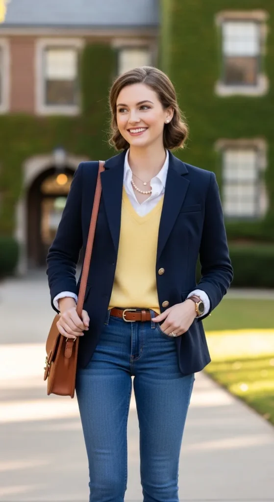 Think collared shirts, sweater vests, and structured skirts. Chunky loafers complete the preppy aesthetic without looking costume-like.