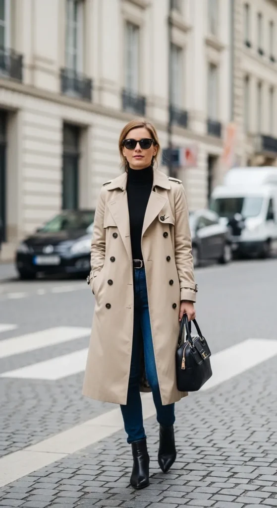 A trench coat instantly makes loafers feel timeless. This pairing works especially well with jeans or skirts and neutral layers underneath.