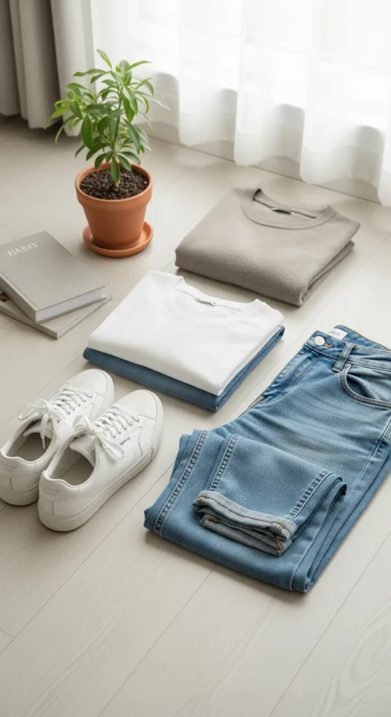 Sometimes the simplest outfits last the longest. Jeans, a tee, and chunky loafers prove that basics never go out of style.