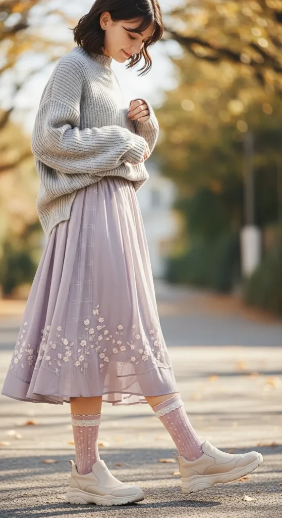 Visible socks add personality without feeling trendy when done right. Choose neutral or ribbed socks and pair with a skirt for a classic yet playful look.