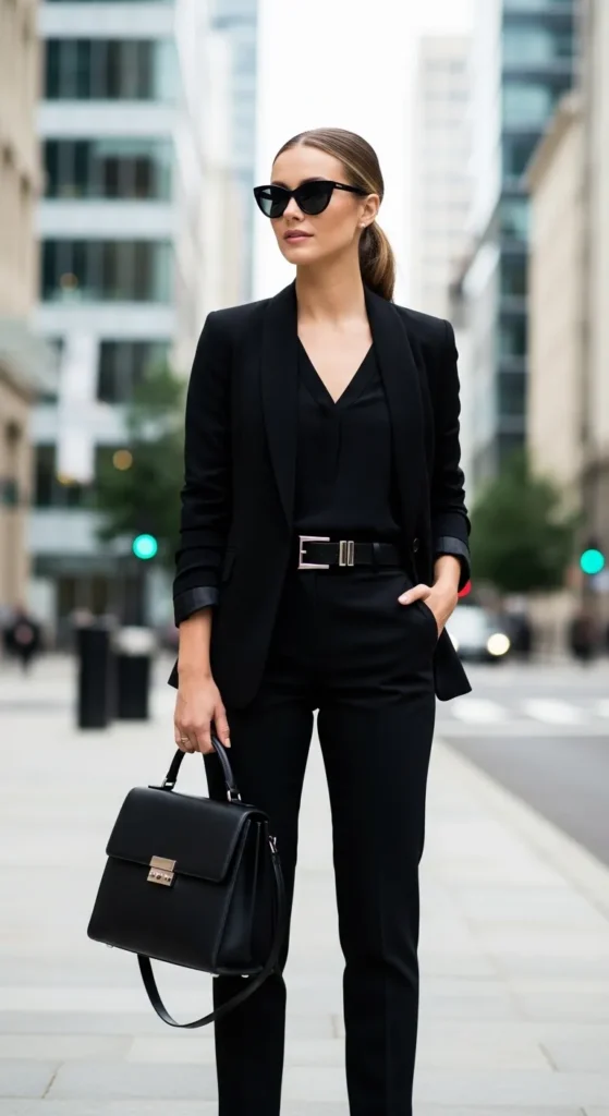 If you love minimalist fashion, try an all black outfit with a subtle statement belt. The belt adds structure and visual interest while keeping the overall look professional and clean.