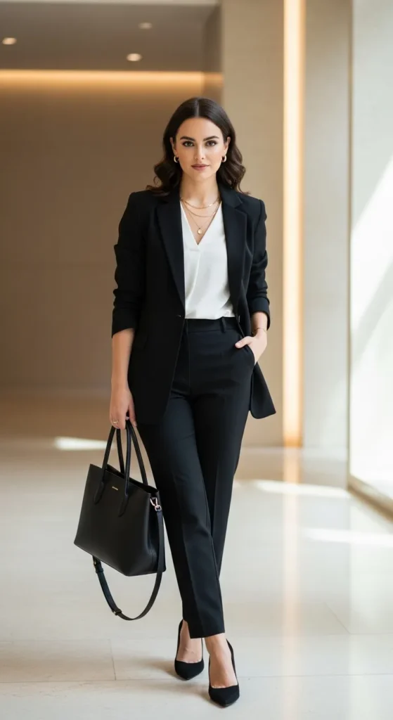 1. Classic Black Blazer Outfit with Tailored Trousers