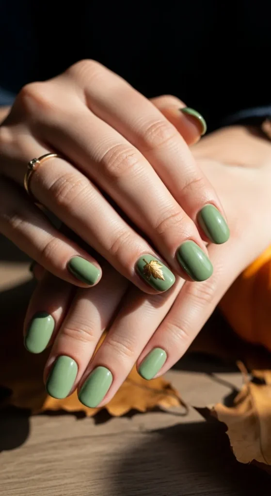 Sage green offers a lighter, calming option for fall nail lovers. It pairs beautifully with creams, browns, and minimalist nail art.