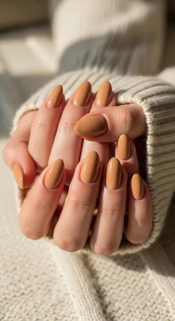 Camel tan nails mirror fall fashion trends perfectly. This color feels polished, neutral, and chic—ideal for a clean trendy manicure.