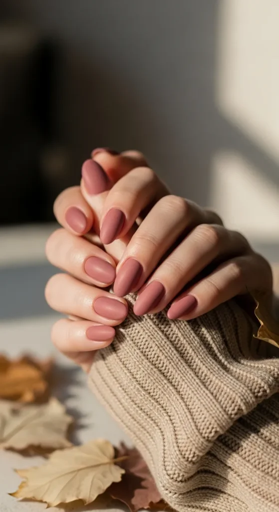 Dusty rose brings softness to fall nail looks. It’s romantic, subtle, and works beautifully for everyday wear. This shade pairs well with knitwear and neutral wardrobes.