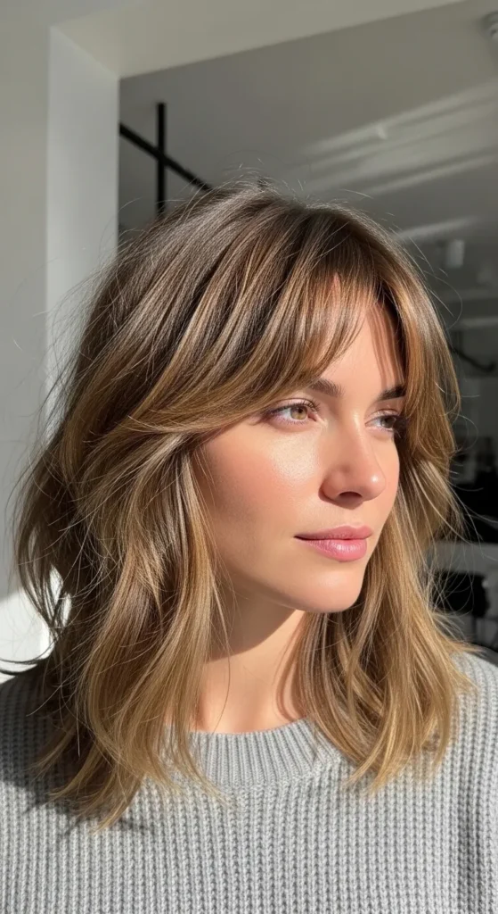 13. Medium Hair with Soft Shag Bangs (Subtle Version)